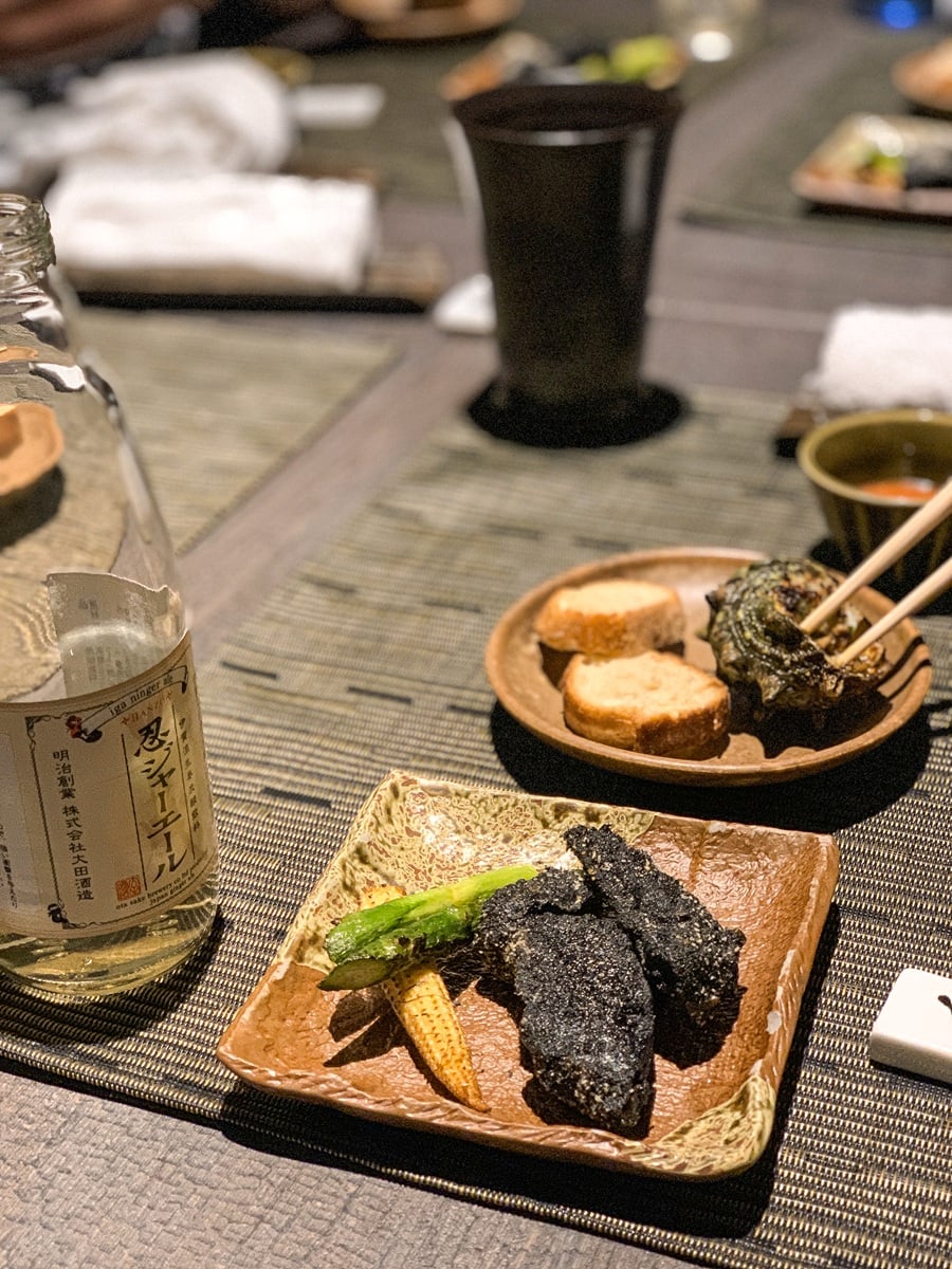 Dessert was served inside a basement room, along with a “ninja show” which really was more like a magic show—impressive none the less. During my visit, dessert included a tiny bonsai tree made entirely of sweets, with branches that had to be trimmed with scissors before eating.