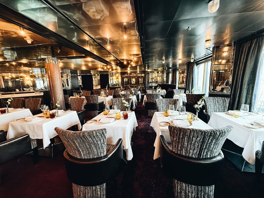 With a menu inspired by Southeast Asia, China, and Japan, this restaurant quickly became my favorite one onboard. The wok-seared lobster with ginger, sweet chili, soy, and Asian greens is the dish you order first and dream about later. And whatever you do, save room for the Mango Posset for dessert. It’s bright, creamy, and the perfect sweet finish to the meal.