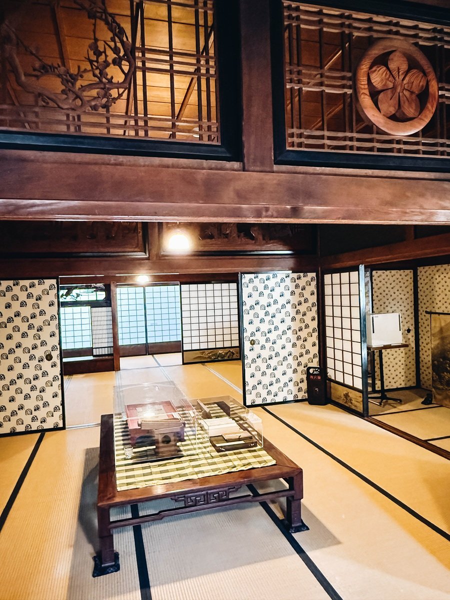 One of the highlights was visiting Shichiken, a sake brewery founded in 1750 that has been producing smooth, elegant sake here for more than 300 years. Here you can do a sake tasting, but also see where Emperor Meiji once stayed overnight in the brewery’s wooden building during his 1880 imperial tour of Yamanashi. Inside, the former imperial lodging, now known as Anzaisho, still holds beautifully carved fanlights depicting the Seven Sages of the Bamboo Grove, a gift that inspired the brewery’s name. There’s also a small exhibition space, Denso-gura, housed in a renovated rice storehouse, where rotating seasonal displays feature artworks and documents passed down through the Kitahara family, including items connected to the emperor.